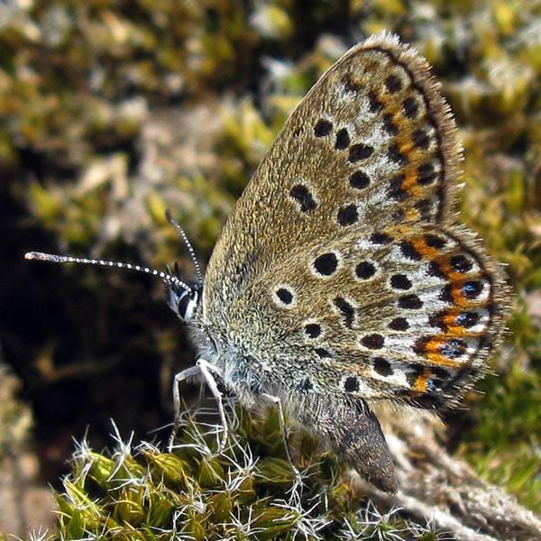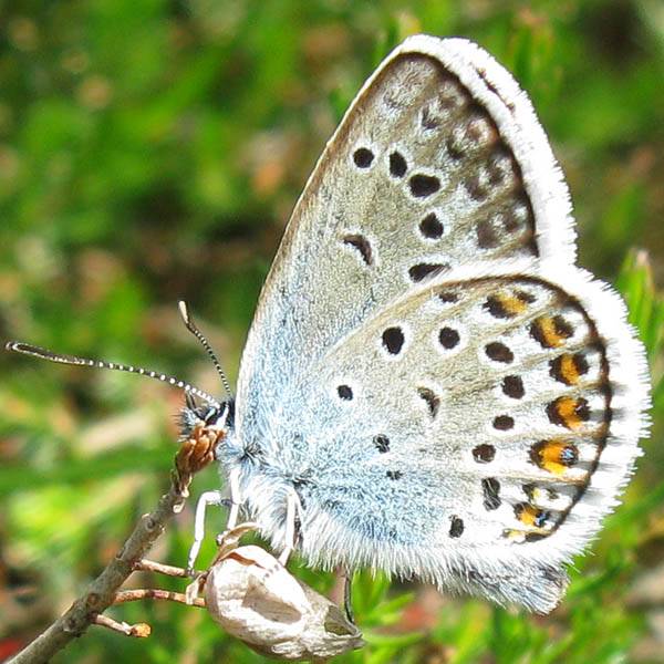 Male Silver Studded Blue. | Two Male Silver Studded Blues, one deformed. | Male Silver Studded Blue. | Female Silver Studded Blue. | Female Silver Studded Blue. |