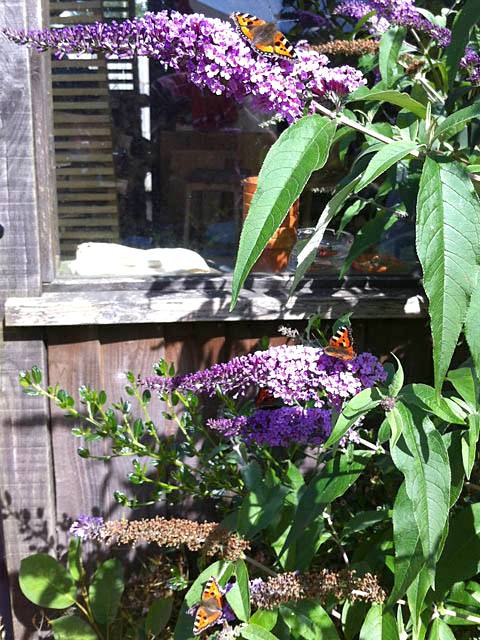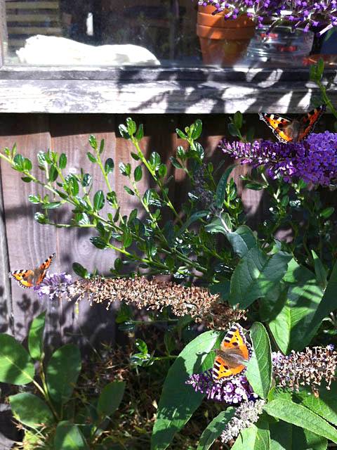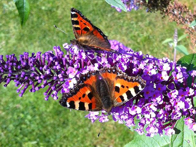 Small Tortoiseshells on a Buddlheia bush at the Fur and Feathers pub in Hampshire.