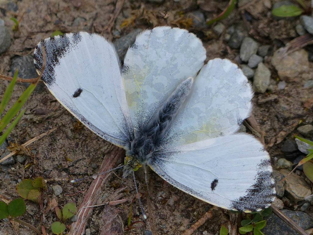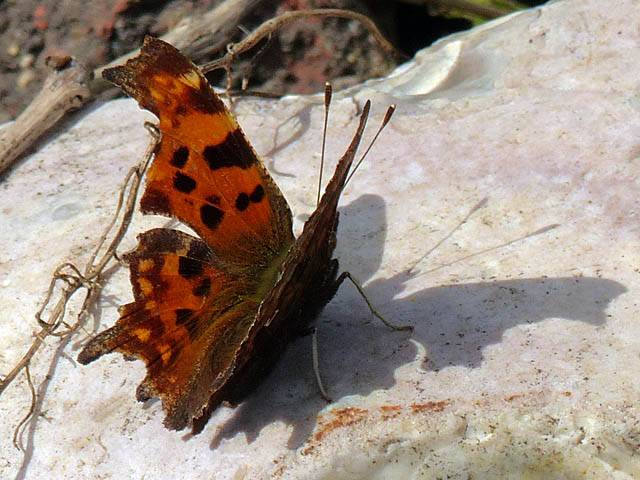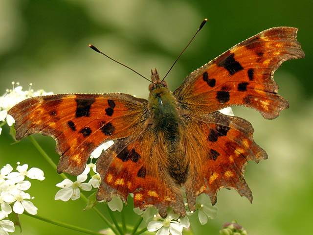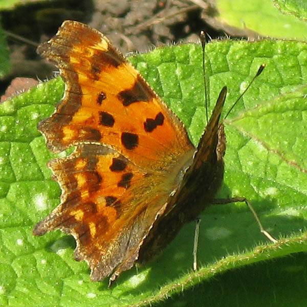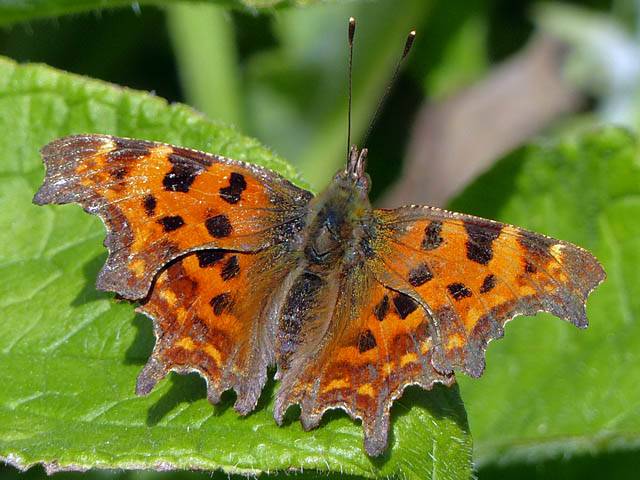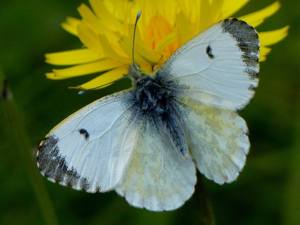 Speckled Wood. | Male Orangetip. | Small White. | Comma. |