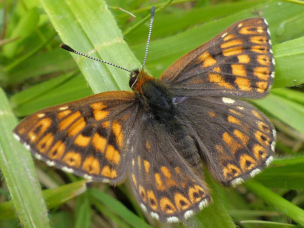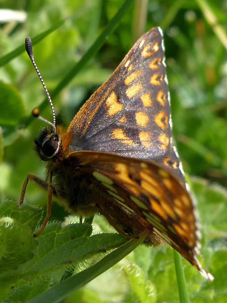 Fresh Male Duke of Burgundy at Ivinghoe Beacon. Cloud cover allowed me to get very close with the FZ200 as it became settled and docile.