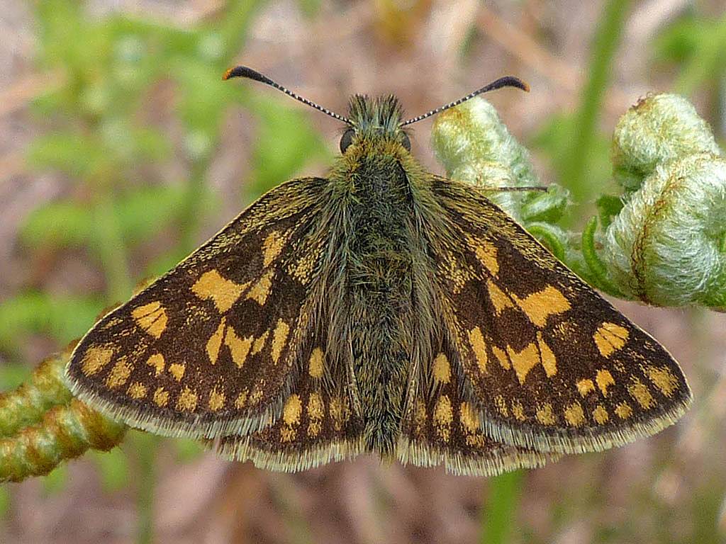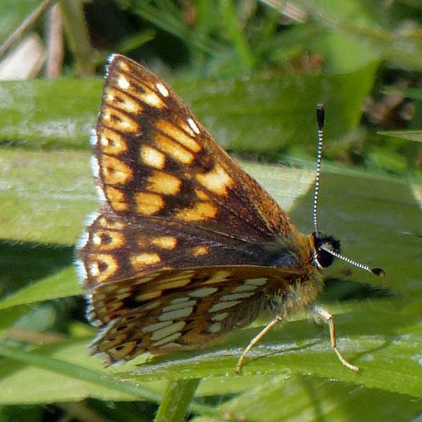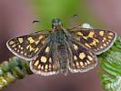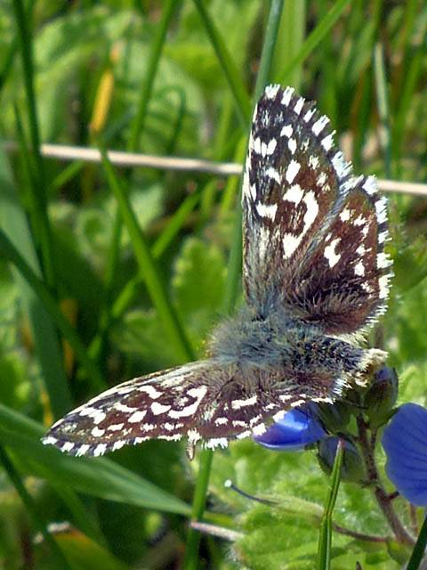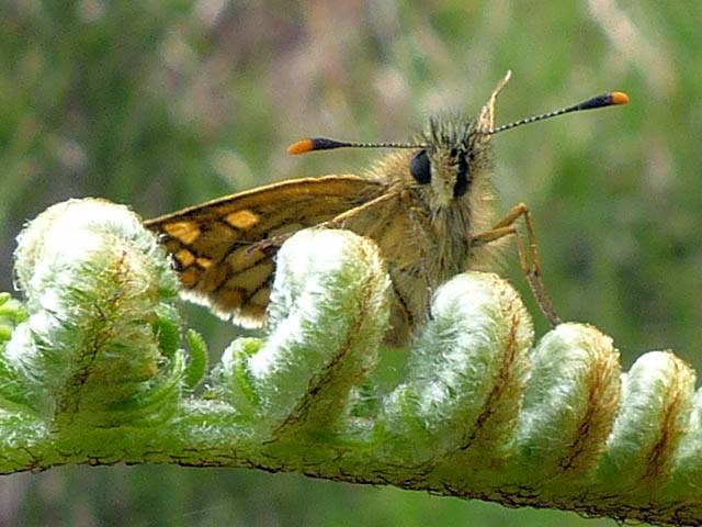 Female Chequered Skipper. | More shots of the same Female Chequered Skipper. | Female Chequered Skipper in its home environment. |