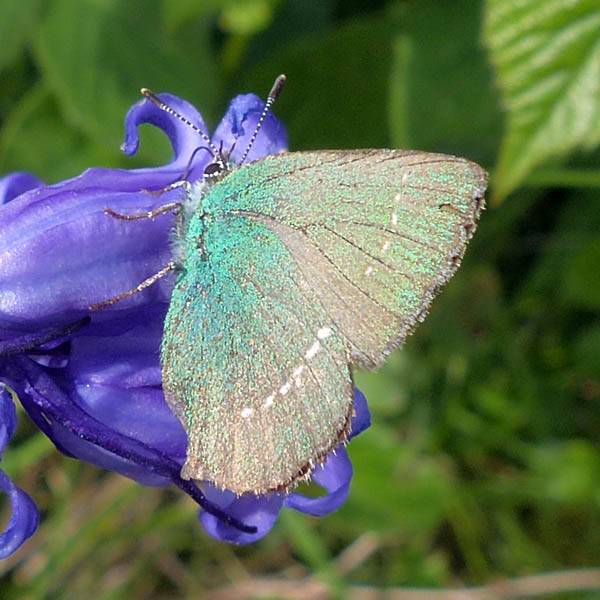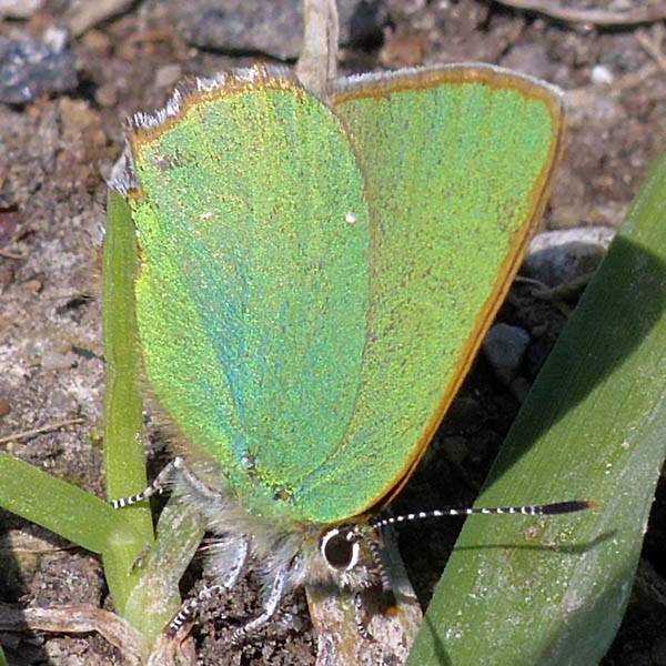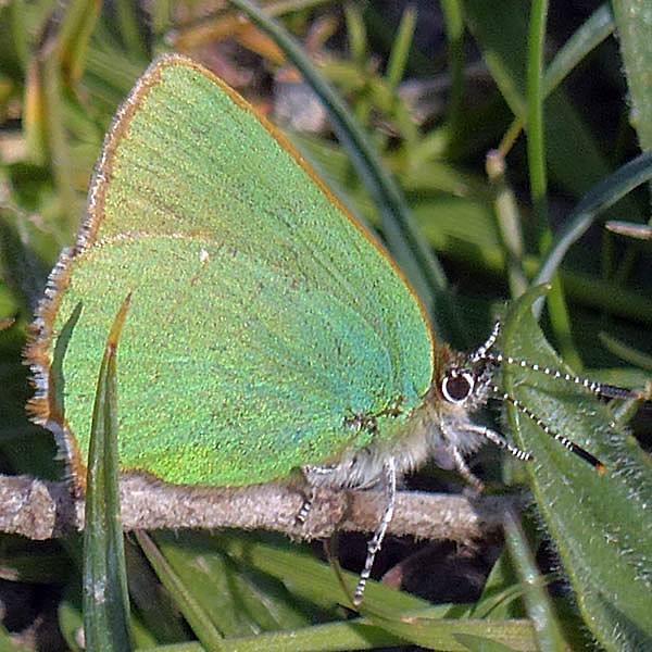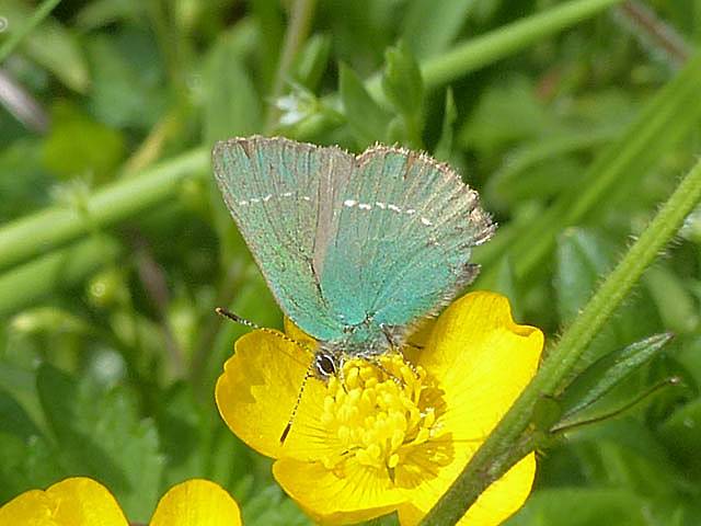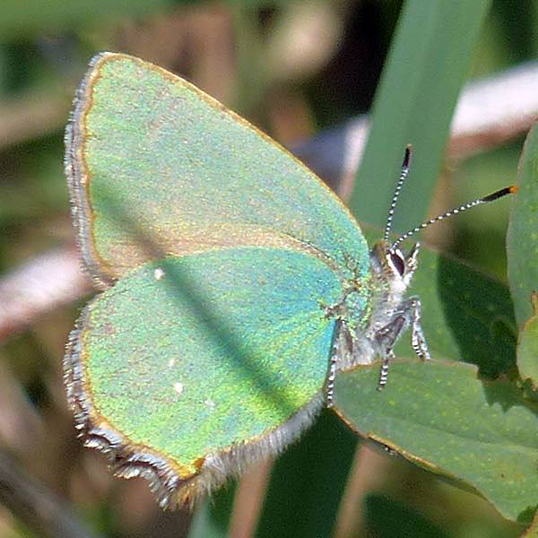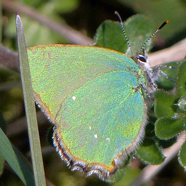 Green Hairstreak. Also caught launching, revealing the normally hidden brown upper wing surfaces. |