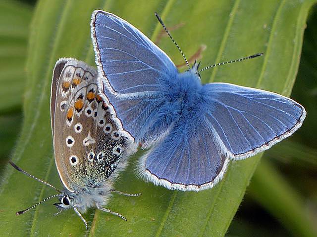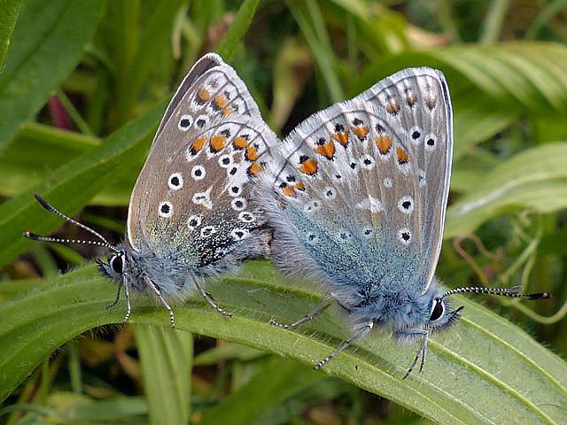 Three shots of a Female Small Tortoiseshell egg laying. | Green Veined White. | Pair of mating Common Blues (Female on left). |