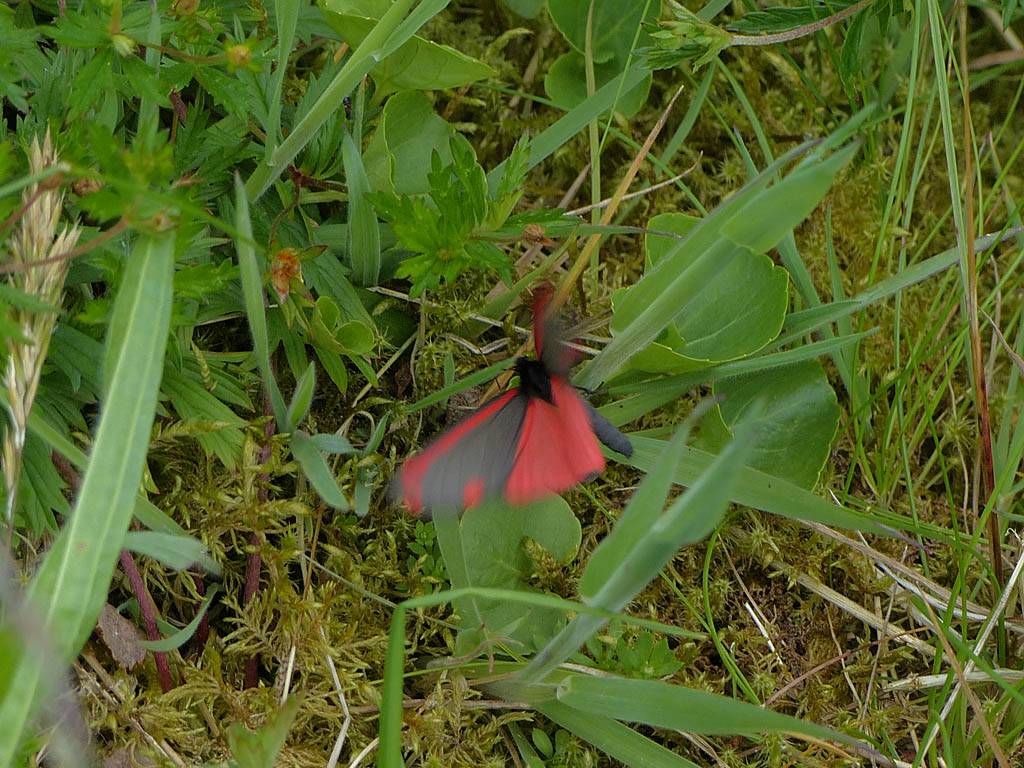 Somewhere South of Craignure, Jack released two freshly emerged Female Orangetips that he had bred through from Caterpillars. (They occur naturally here so no problem. They are also normally out later than the Southern counterparts.) After feeding up on nectar the ladies soon took their maiden flights and were free. | Cinnabar moth at the release site. | Brown Silver-line moth at Ardery, Ardnamurchan. |