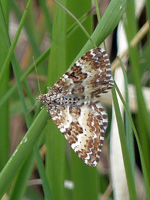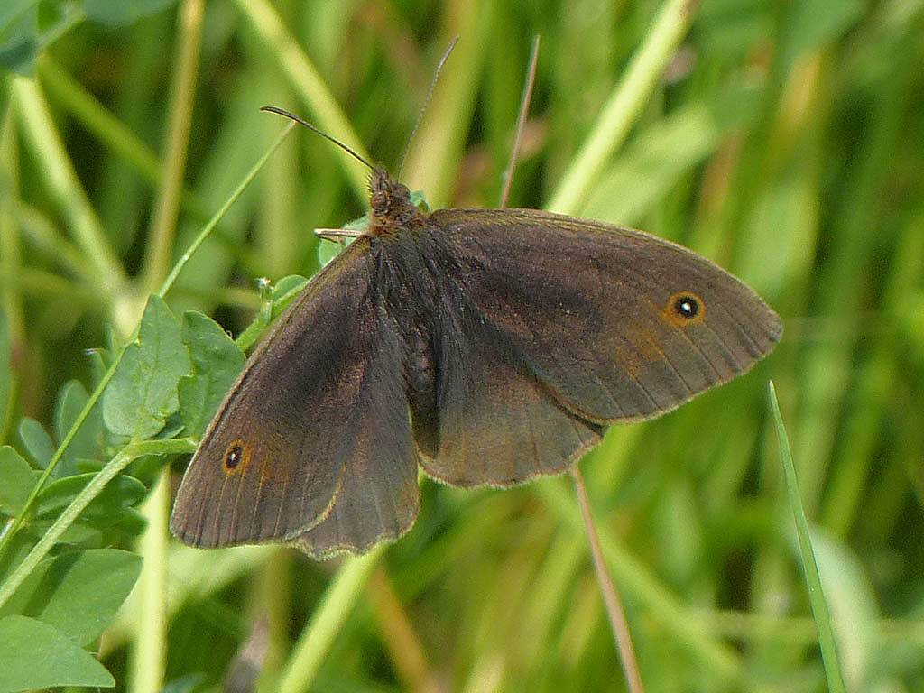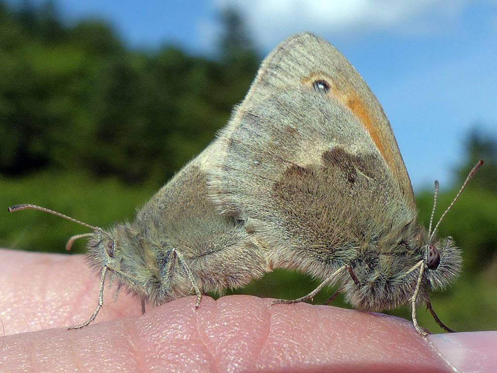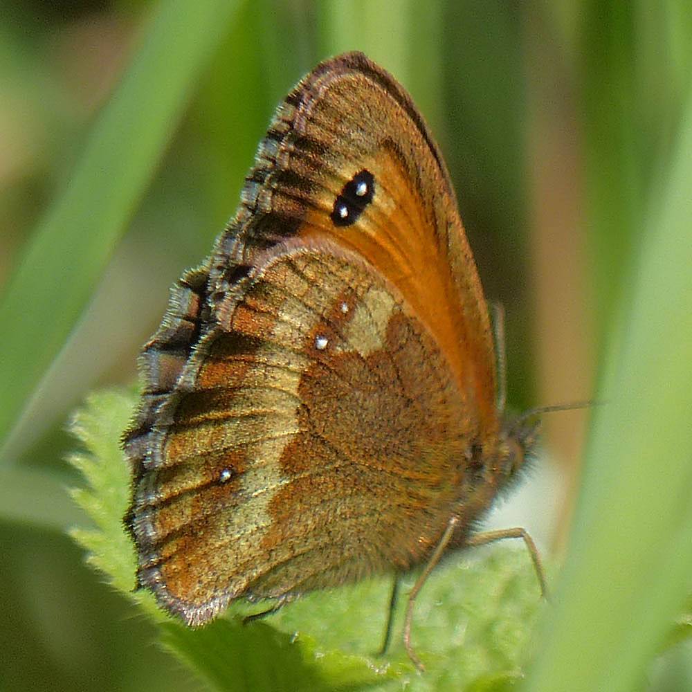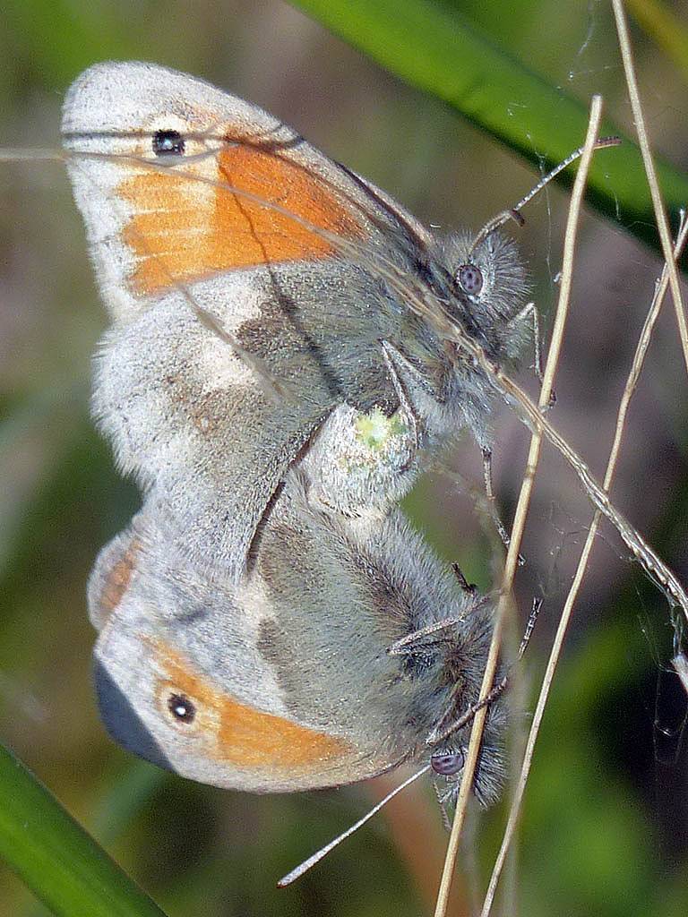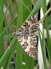 Green Veined White. | A pair of mating Small Heath butterflies. | Small Pearl Bordered Fritillary. I had no time to get a better shot without the grass blade in the way. I'm just glad this one focussed well in a rush. | Silver Ground Carpet. | An elderly Peacock butterfly. Just after this shot it got caught in a spider's web and I rescued it. |