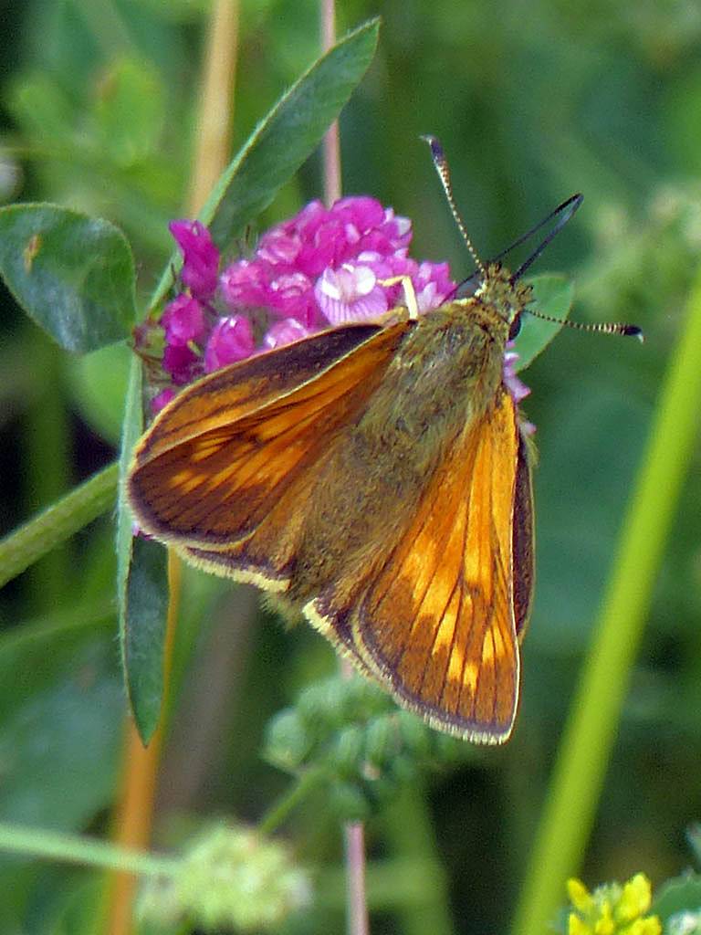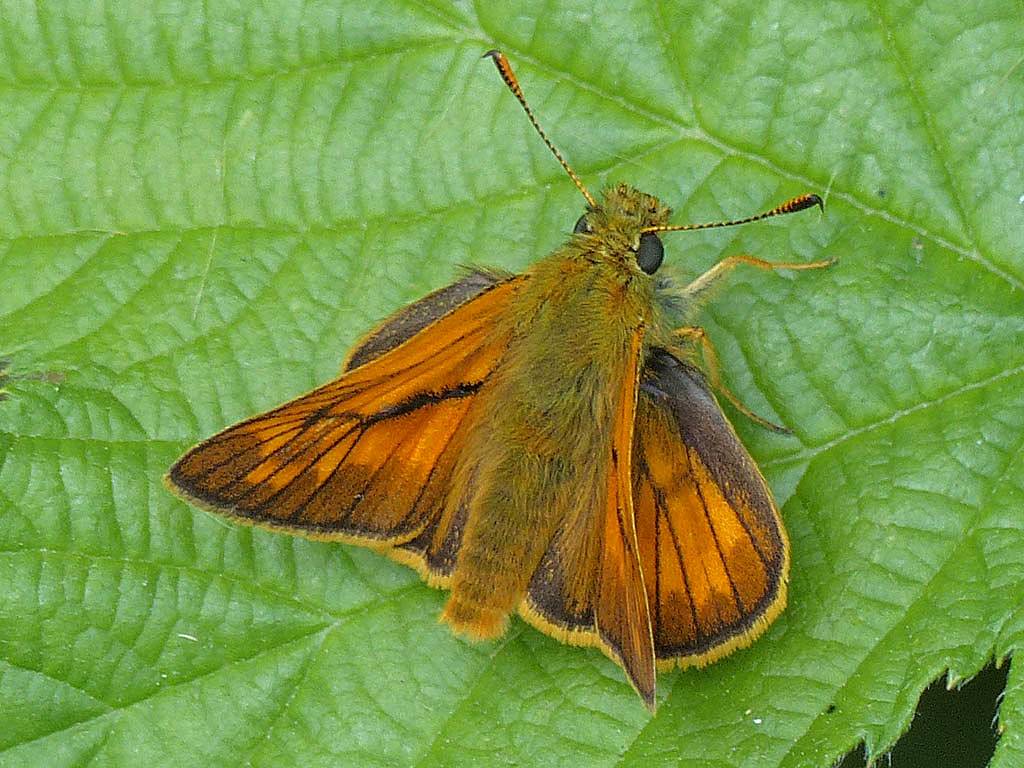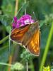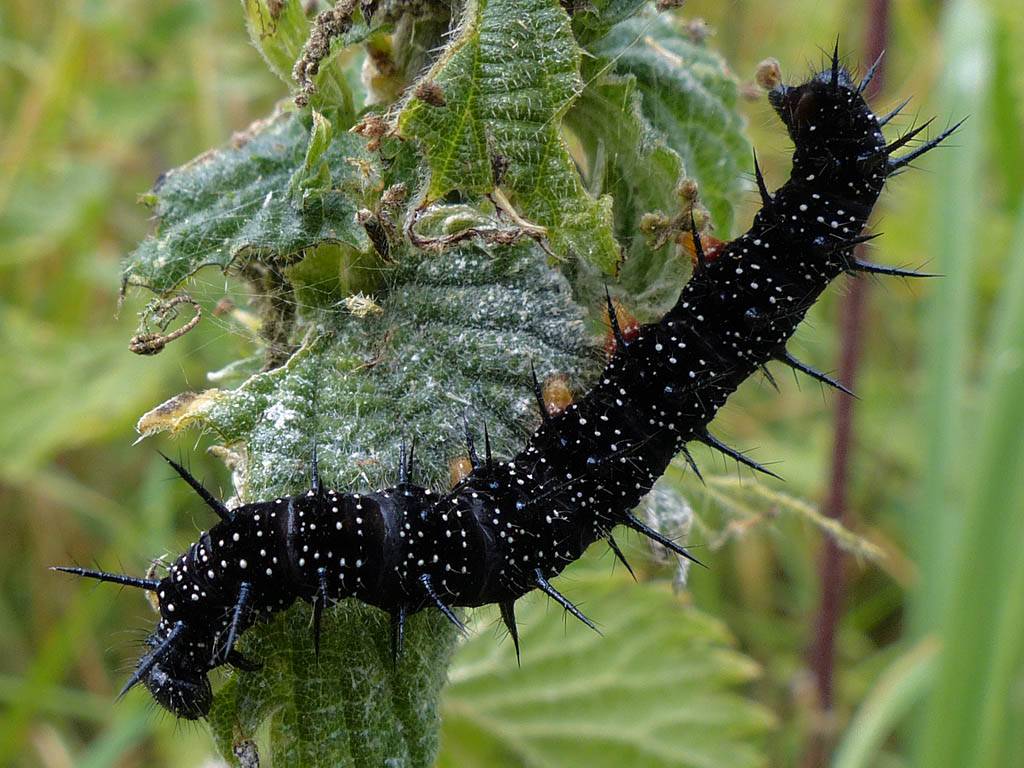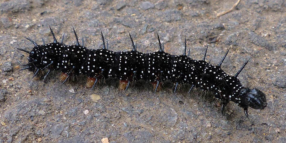Male Large Skipper. | Final Instar Peacock Caterpillar that I rescued from a busy footpath. | Two Red Admirals. |