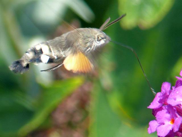 Elderly Lasham Yellow Shell. | Hendon Small Dusty Wave. | A Hummingbird Hawk Moth feeding on Buddlhiea. |