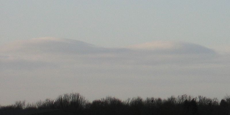 Lenticular-like clouds over Barnhill. One with a distrail-like feature. | Sunset over Kenton. | 22 degree halo seen around noon at Bison Hill. |