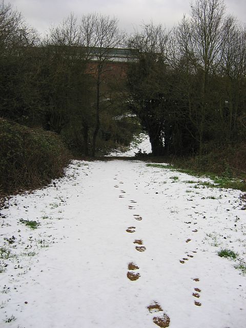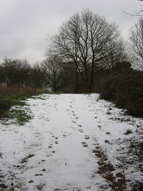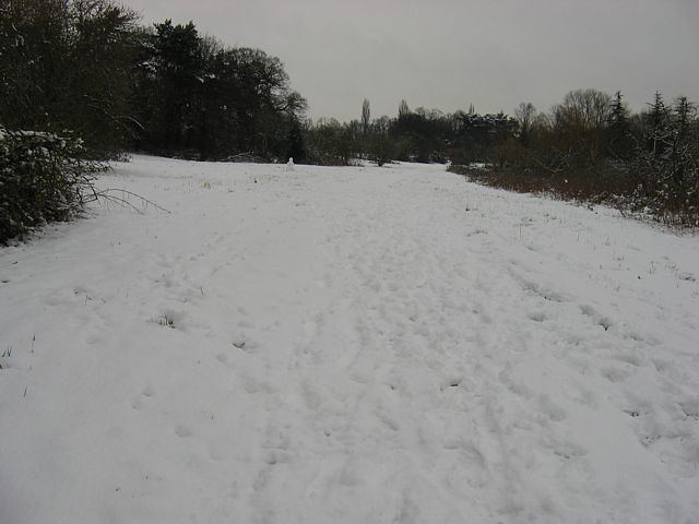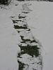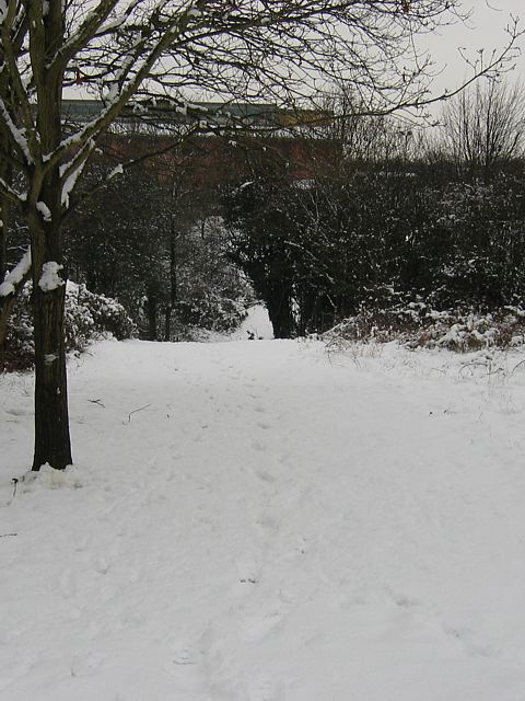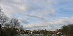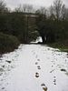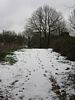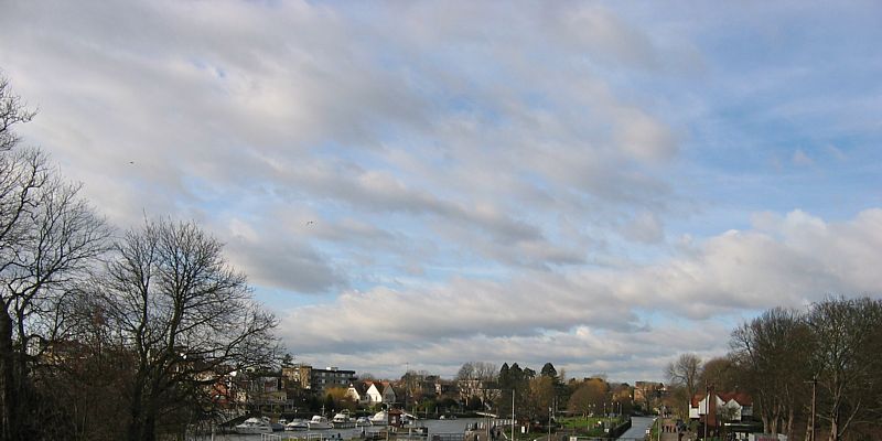 Thin covering of snow on a path in Greenford. | Streamers of thin low wispy cumulus over Teddington Lock. |