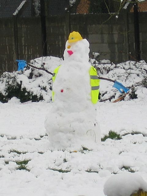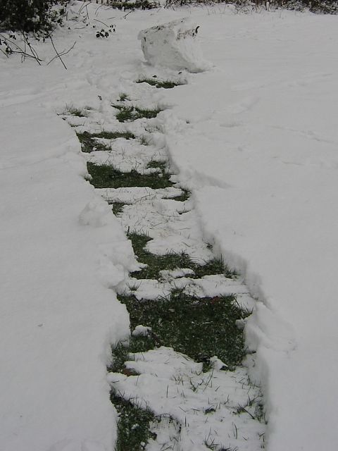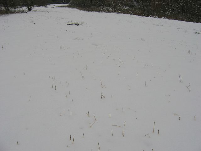 Trudging through ankle deep snow in a field at lunchtime. Plus a zoom in on a mini snowman in the vicinity. | Undisturbed patch of snow covering all but the tallest of grass stalks. | Measuring snow depth. Here it was more than 10cm. | Snow covered logs. | The kid in me takes over for a moment. Rolled a large snowball. |
