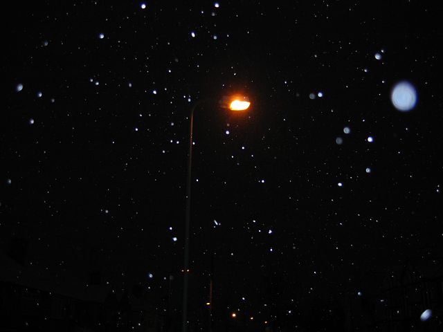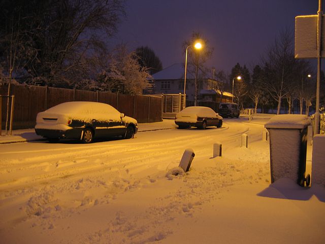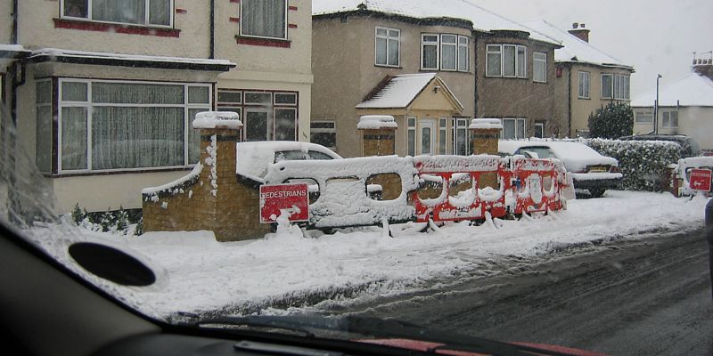 Snow in Kenton early in the morning. It was coming down heavily with 5cm on the ground. | Falling Snowflakes lit up by camera flash. | A very slow and snowy drive to work. |