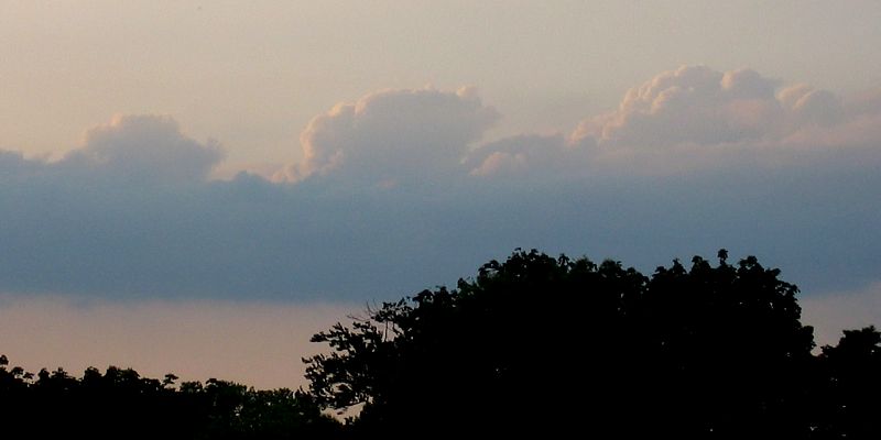 Cumulus on the horizon at dusk. | Cirrus after sunset. | Frog shaped cumulus cloud. | Rapidly building towering cumulus with pileus on top. | A 'face' sticking out the top of a large cumulus cloud. |