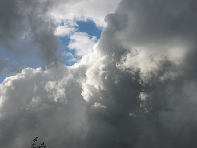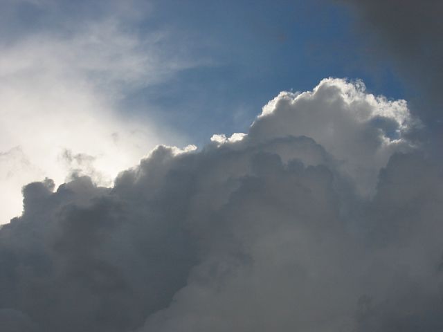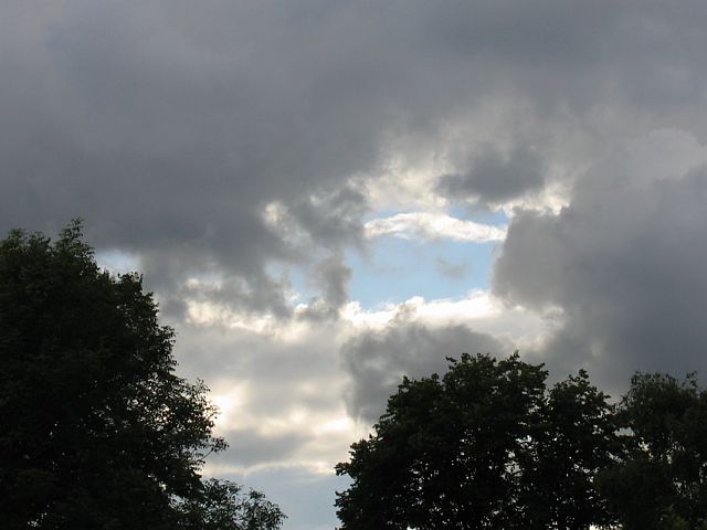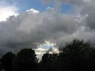 Passing thunderstorm. | A gap in the clouds. | Silhouetted cloud tops. | A zoomout of the gap. This cloud is much bigger than it looks in the pic. | some huge clouds passing by now. | It's getting dark early! |