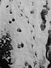 Snow melting away. How the landscape changes. Especially revisiting the previously buried path, the flood and the distinctive trees. |