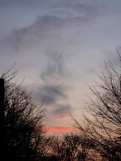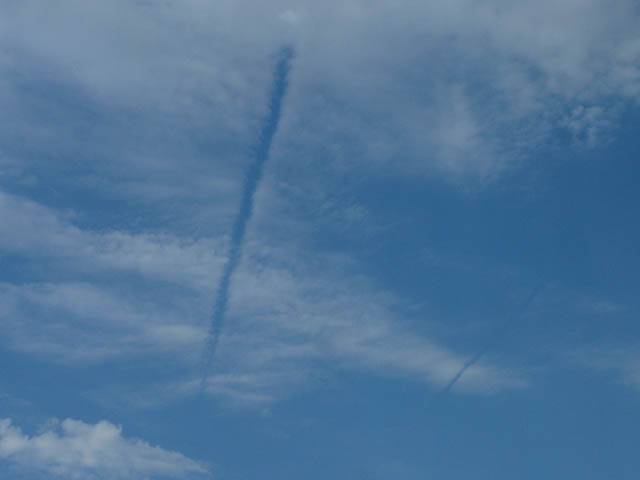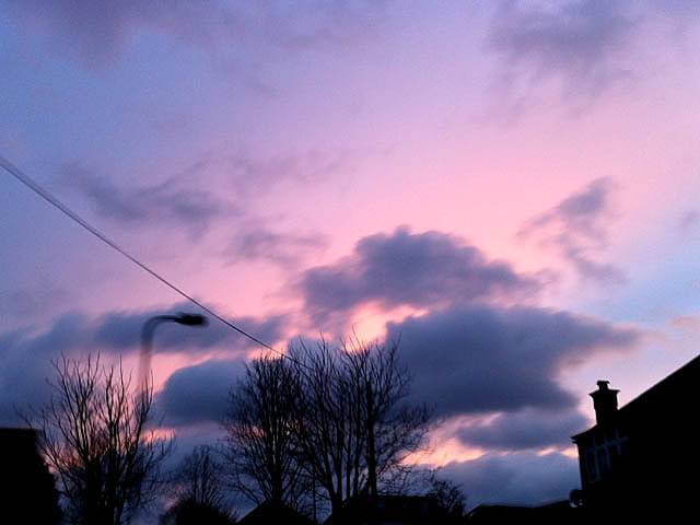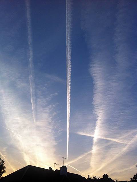 Contrails in a remarkably clear Camden sky. | Nice cloudscape above Ivinghoe Beacon. | Spectacular Kenton sunset. | Lovely cumulus over Kenton. |