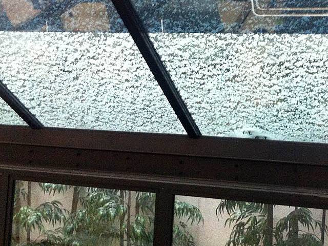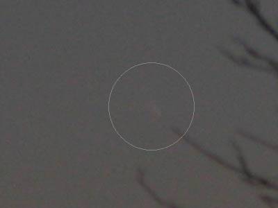 A rather faint view of comet Pan-Starrs (circled to aid spotting it). (It looked much better in the binoculars! My camera was pushed to its limit here.) | Hail storm in Camden Town piling up on a slanted window. | Sunset in Queensbury. | Cloud formation above Kenton. | Cloud formation somewhere above Western Hampshire. |
