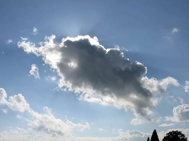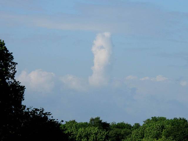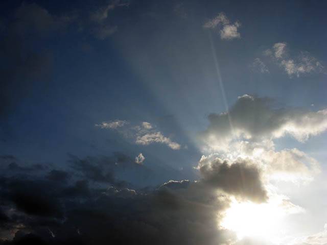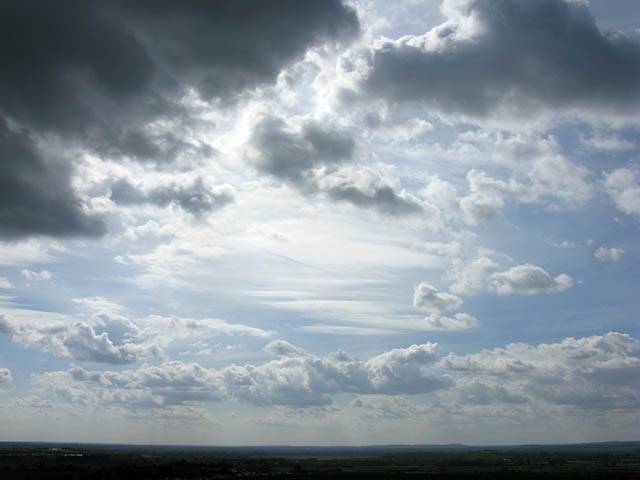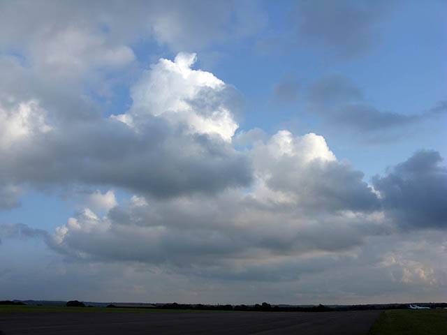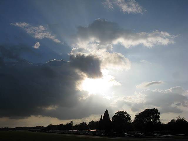 Backlit cumulus cloud at Lasham Airfield. | Cloud finger near Lasham Airfield. | Crepuscular rays over Lasham Airfield. | Cumulus at Lasham Airfield. |