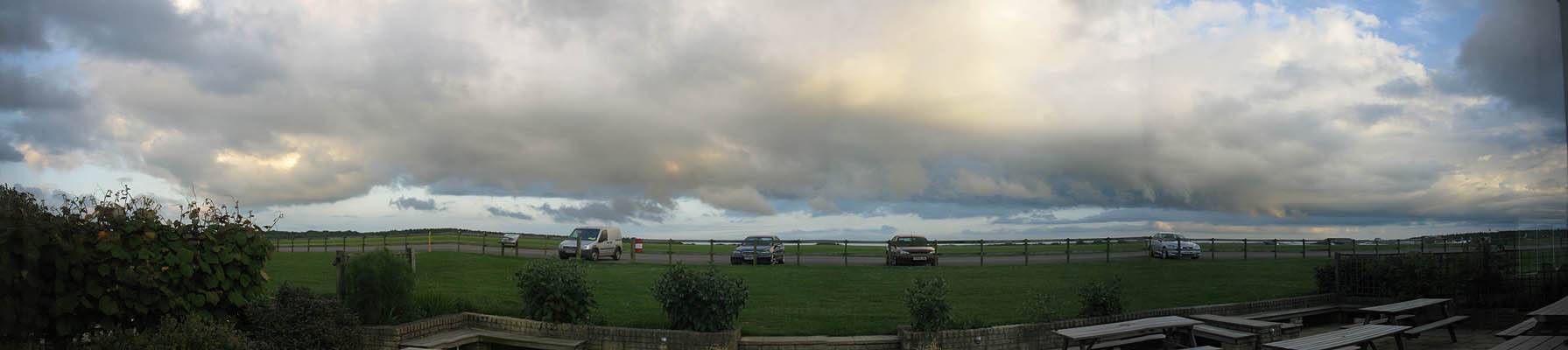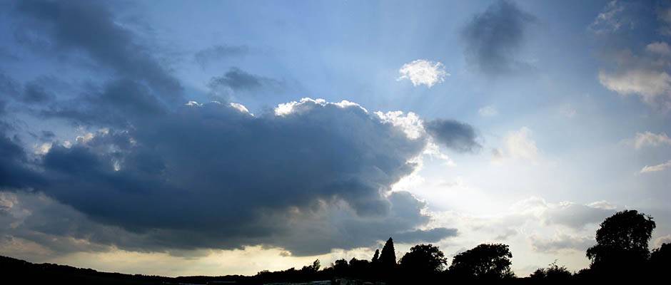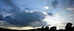 Crepuscular rays over Lasham Airfield. | Large cumulus panorama at Lasham Airfield. |