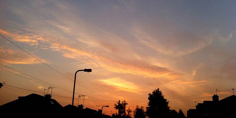 Cloudscape above Watford. | Contrail over Kenton. | Kenton sunrise. | Kenton early morning contrails. | Kenton sunrise. | Wet Kenton. |