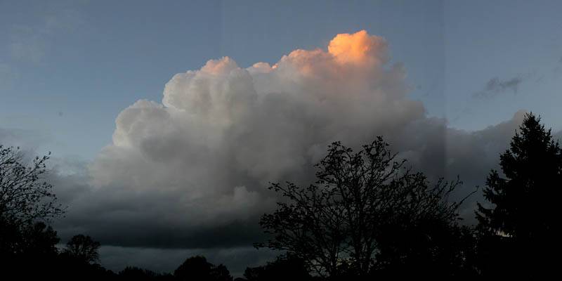 Spectacular cloud over Kenton. | Cumulus backlit by setting sun near Kenton. | Spectacular cloud now lit by sunset. |